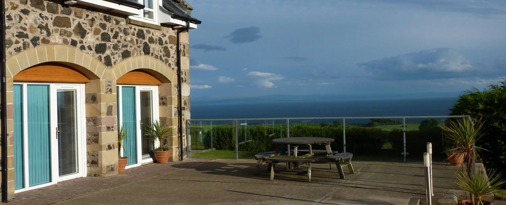 On a clear day, from the terrace, you can see the sweeping coastline across the Firth of Forth — from Edinburgh round to St Abbs Head.